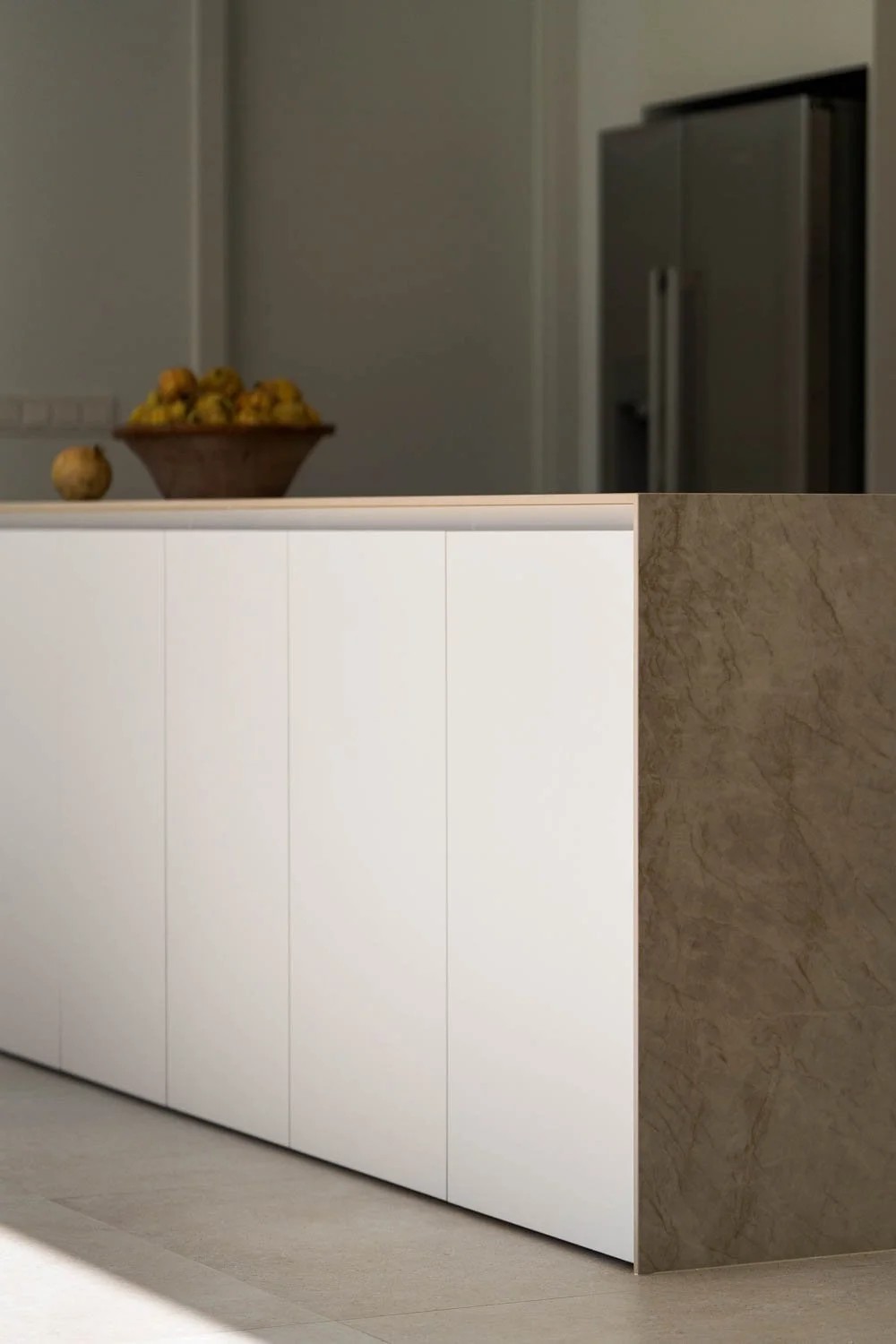 The result is a cohesive, artistic body of work that turned the lack of furniture into an asset. The photographs highlight the nobility of the stone, the precision of the woodwork, and the architectural rigor of the design. The client received images that go beyond mere documentation, capturing the atmosphere through texture and light. This material serves as a professional tool for showcasing the design firm's expertise.